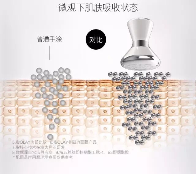,颠覆传统面膜的使用方式,通过磁力渗透,帮助面膜霜中有效成分的吸收,改变了面膜难吸收这个问题。就是 OLAY 磁力导入面膜。
